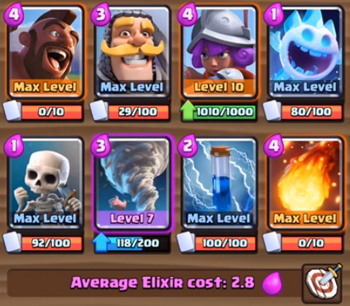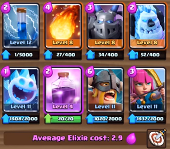 让我们从最常见的低价野猪骑士卡牌开始。虽然看起来不怎么样,但是绝对是一套非常强大的套牌。使用骑士抵抗伤害,然后使用野猪消耗对方的防御塔。同时,找机会使用小型闪电和火球,让野猪骑士尽可能多地攻击防御塔;使用高输出的小炮手配合飓风法术防御,还有小骷髅和冰淇淋的辅助。绝对不弱。