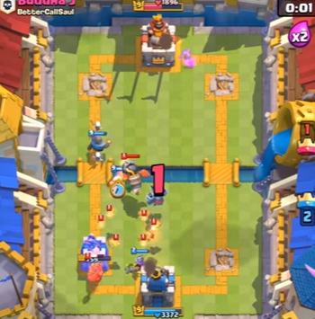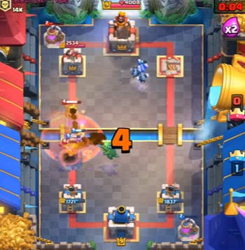 曾经非常火爆的X弓组合阵容现在玩家已经很少了,但还是有能力分一杯羹的。这套卡牌中,X-Bow是核心卡牌,可以远距离消耗对方的防御塔。因此,必须适当利用前面的戈兰冰人卡牌,吸收对方防御单位的火力,然后跟进重甲亡灵和弓箭手的卡牌输出,这样才能保住X弓,拥有一个有机会消耗掉对手的一波。如果对方进攻,