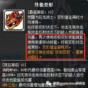 还有一点,如果你想节省变身值,可以考虑将魔息狂暴持续和魔息强化换成神秘持续和神秘额外攻击。