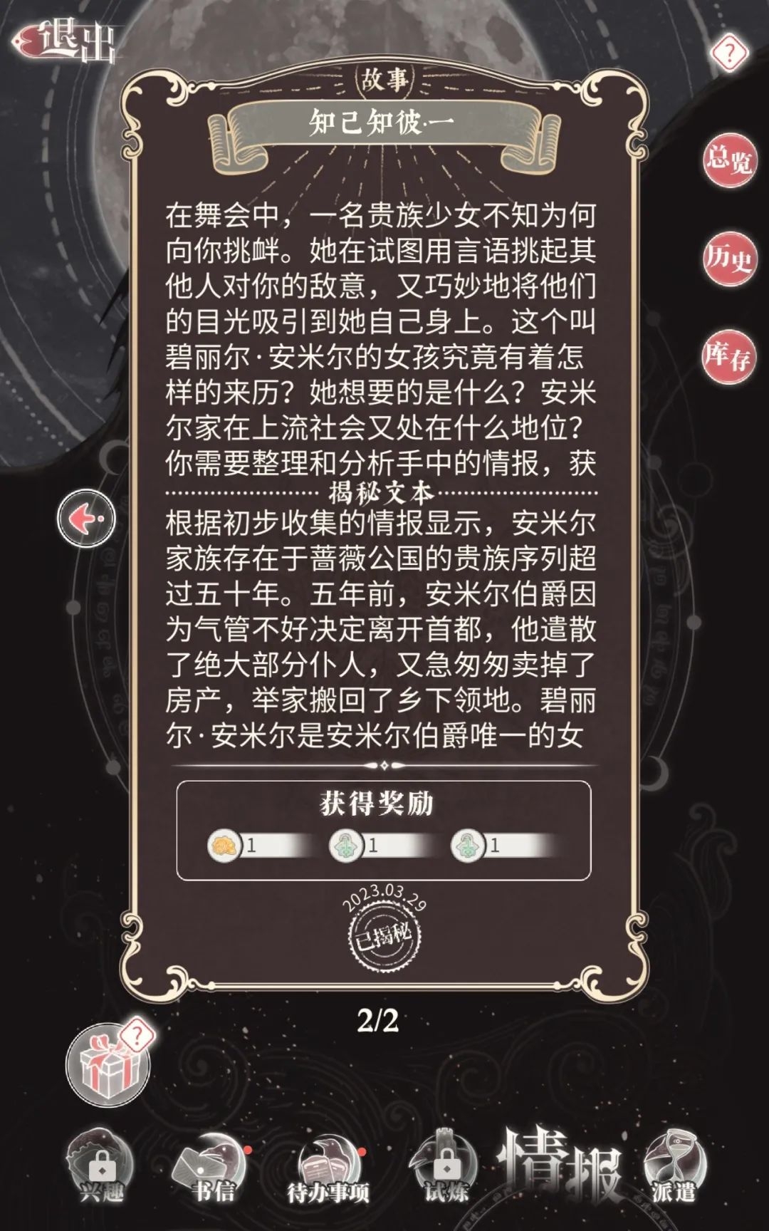 又比如游戏剧情的特殊推进方式:它并不直白,而是为你提供各种了解背景和信息的渠道,比如“情报”和“信件”系统。