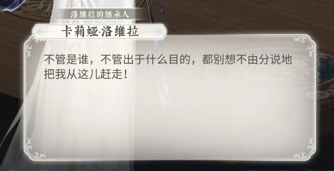 就像早期的舞蹈一样,少女对主角莫名的傲慢,言语颇具挑衅意味。在这个故事中,这一点没有被说明,但也没有被继承。然后你可以使用派遣功能派你的女仆去调查她的背景,然后你就可以得到“信息”并了解背后的真相。