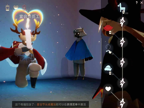 3.点击宴会节员工进行对话,树形视图中解锁,可以拨打使用150根白蜡烛兑换圣诞节椅子。