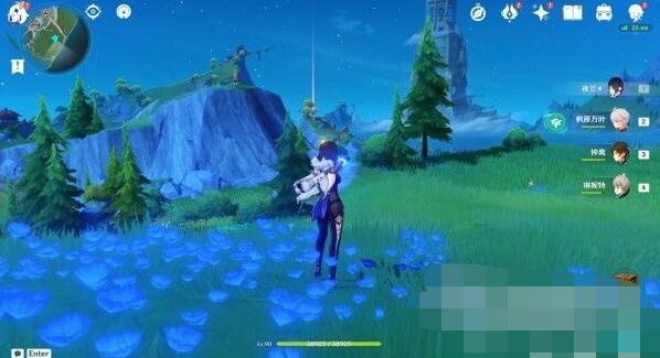 1、首先传送魔界站的锚点。爬上东边的山坡,就能找到七重天雕像。