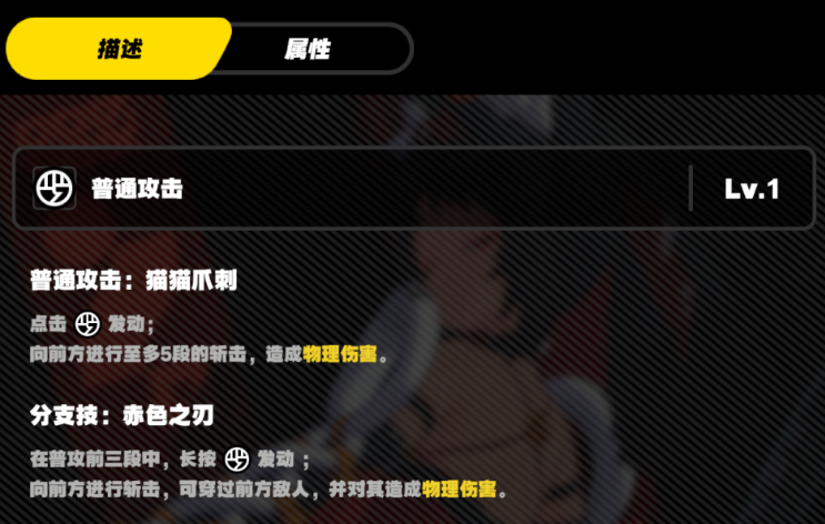 分支技能红刃可以在普攻前三阶段向前斩击,穿过敌人并造成物理伤害;