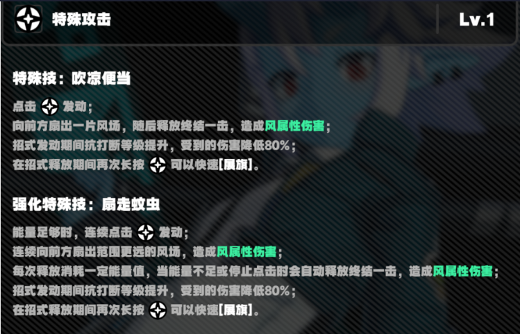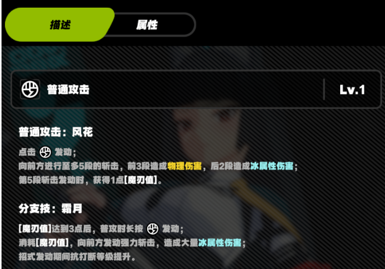 普通攻击风华向前再进行五次斩击,造成物理伤害,最后两斩造成冰属性伤害;