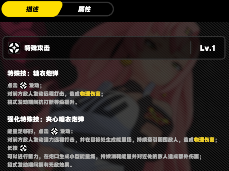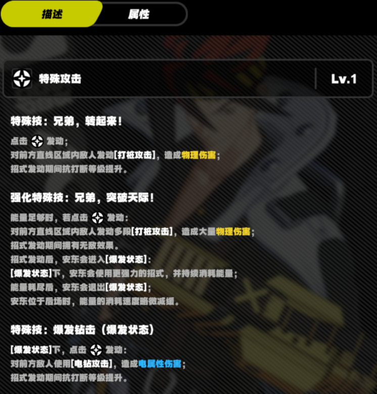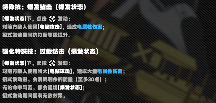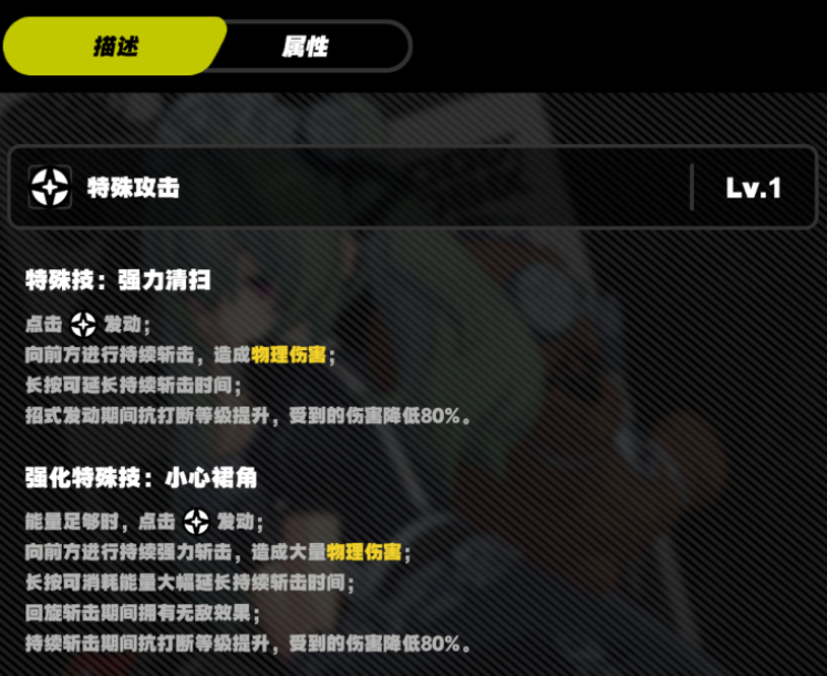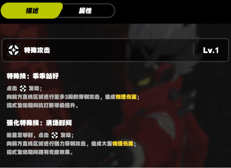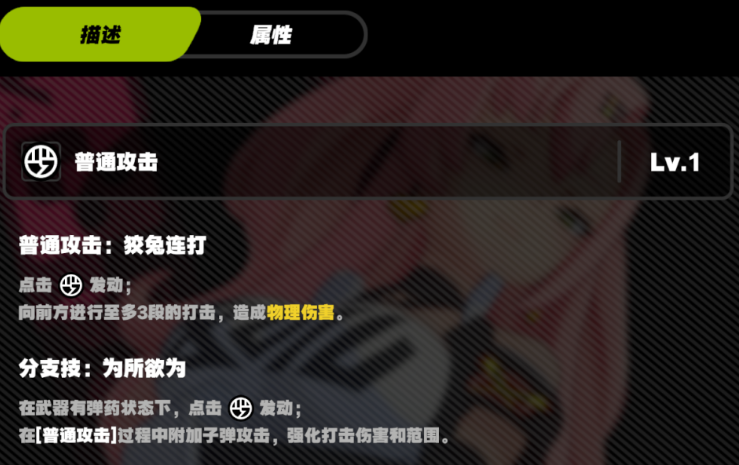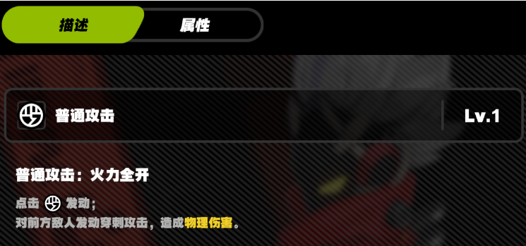 全火力普通攻击对前方敌人发起穿刺攻击,造成物理伤害;