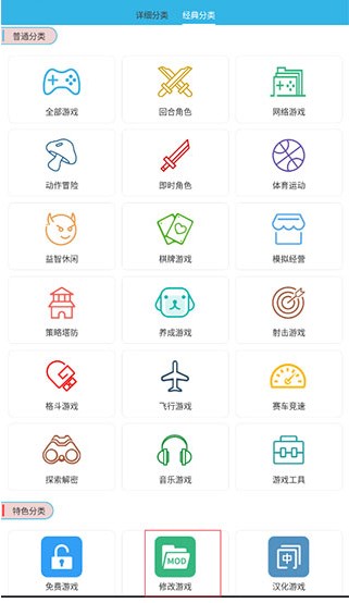3.然后点击页面底部特色类别中的“修改游戏”项;