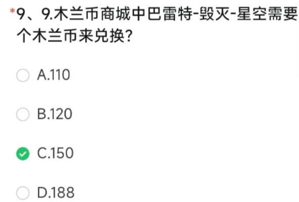 9、在木兰币商城兑换巴雷特-毁灭-星空需要多少木兰币?