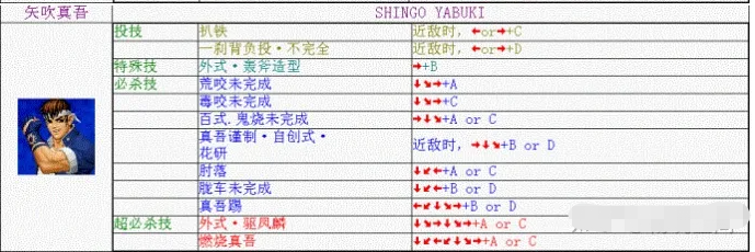 以上是小编为大家带来的拳皇98矢吹真吾出招表的全部内容。希望能够帮助大家更好的运用矢吹真吾这个角色。