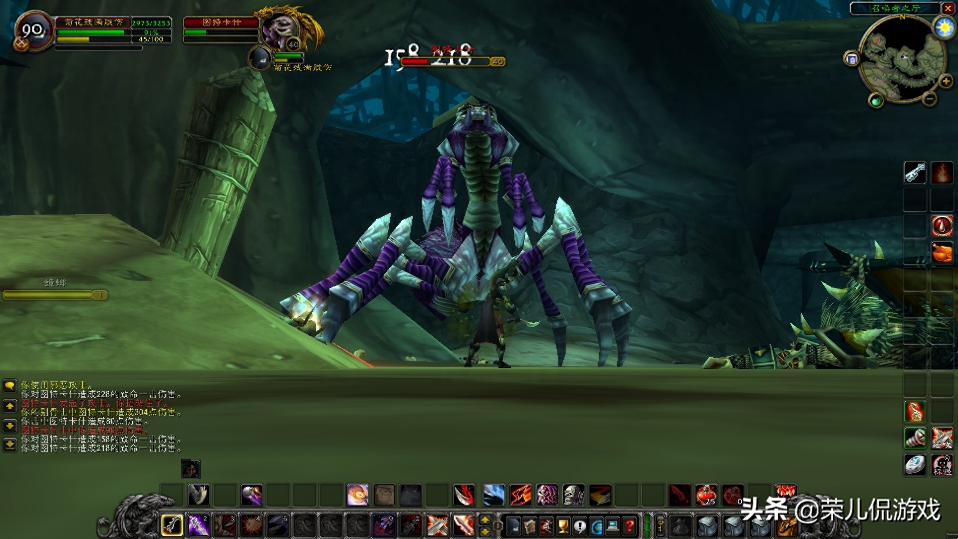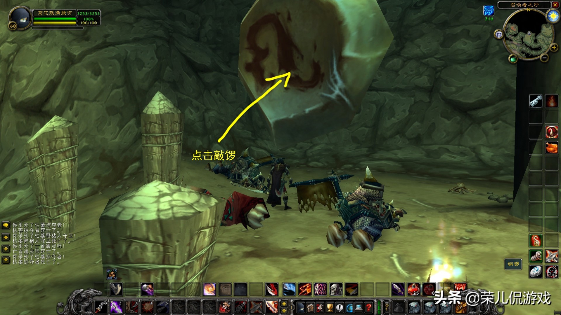 1、有序消灭小怪,来到召唤师大厅,那里有大锣声。清除场景后,右键单击锣。第一次响起时,就会出现一群普通蜘蛛。第二环将有4只37级精英蜘蛛。第三环,boss图坦卡什出现了。