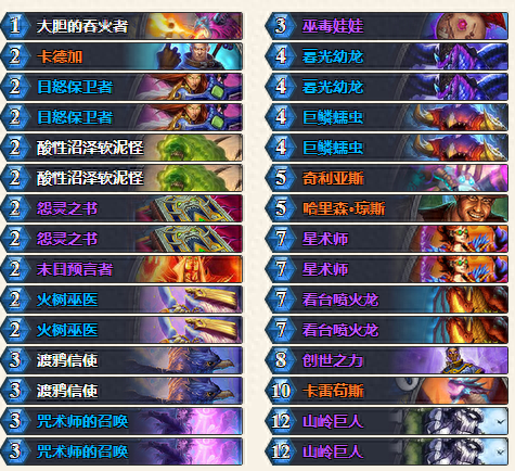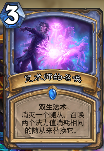 被召唤的随从被召唤两次。卡德加与双生法术—— 合作,召唤巫师、召唤占星家和召唤创造之力。可达到快速摊铺的目的。而且粉丝的质量也不低。