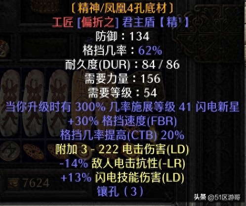 3.盾牌:3孔君主向盾牌倾斜,格挡几率增加54%,内嵌三颗55电珠。