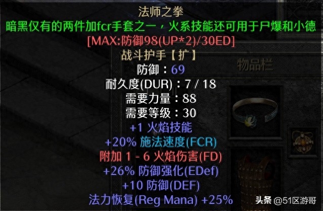 6、手套:法师之拳,增加施法速度20%,法师必备(原51区葛优)。