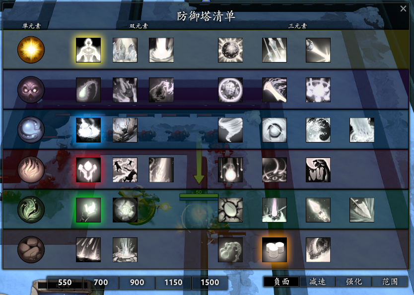 脏塔:AOE+减速,和之前的减速塔没什么区别,看合成(我个人更喜欢风暴塔)。