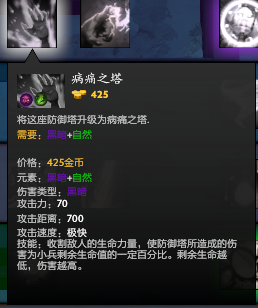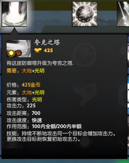 快速塔:攻击力是高攻速塔的常规属性,其技能和攻击速度是显而易见的。升级攻速塔时可以考虑。