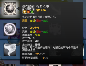 新星塔的减速效果和伤害在第一级时不太好,但在早期阶段还不错。后期需要升级到二级塔,不然会损失很多输出。