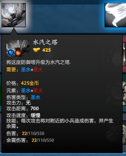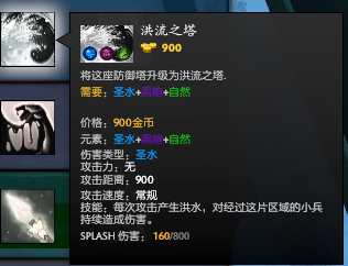 潮汐塔:每次攻击都会引发海啸。虽然伤害不高,但是叠起来就会爆炸。