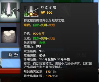 魅力塔:Buff效果塔。虽然攻击力一般,但是技能效果大幅提升塔的伤害,并且可以升级。