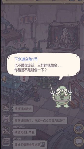 最强蜗牛当玩家杀死房间里的小动物时,下水道里的乌龟就会找上门来,向我们要100万只黑蝌蚪。这对于大多数玩家来说是很难接受的。毕竟,一百万只黑蝌蚪,蝌蚪怎么能言出必行,就不给他们这笔养老金,会不会引发阴谋呢?下面小编给大家带来了一个不用给养老金就能解决的解决方案。不知道的小伙伴们快来看看吧。