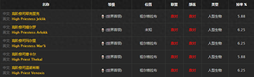 祖格拉布的五位牧师都有几率掉落血盾。如果你穿着正式的西装,这真是一个非常非常酷的错觉。