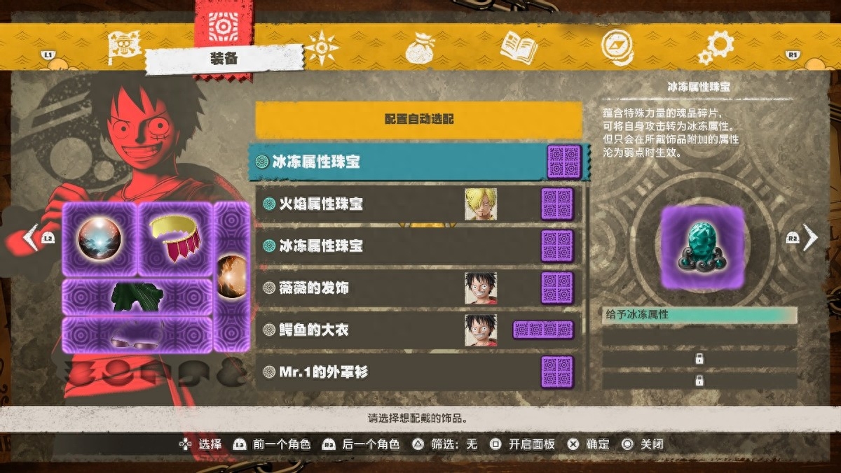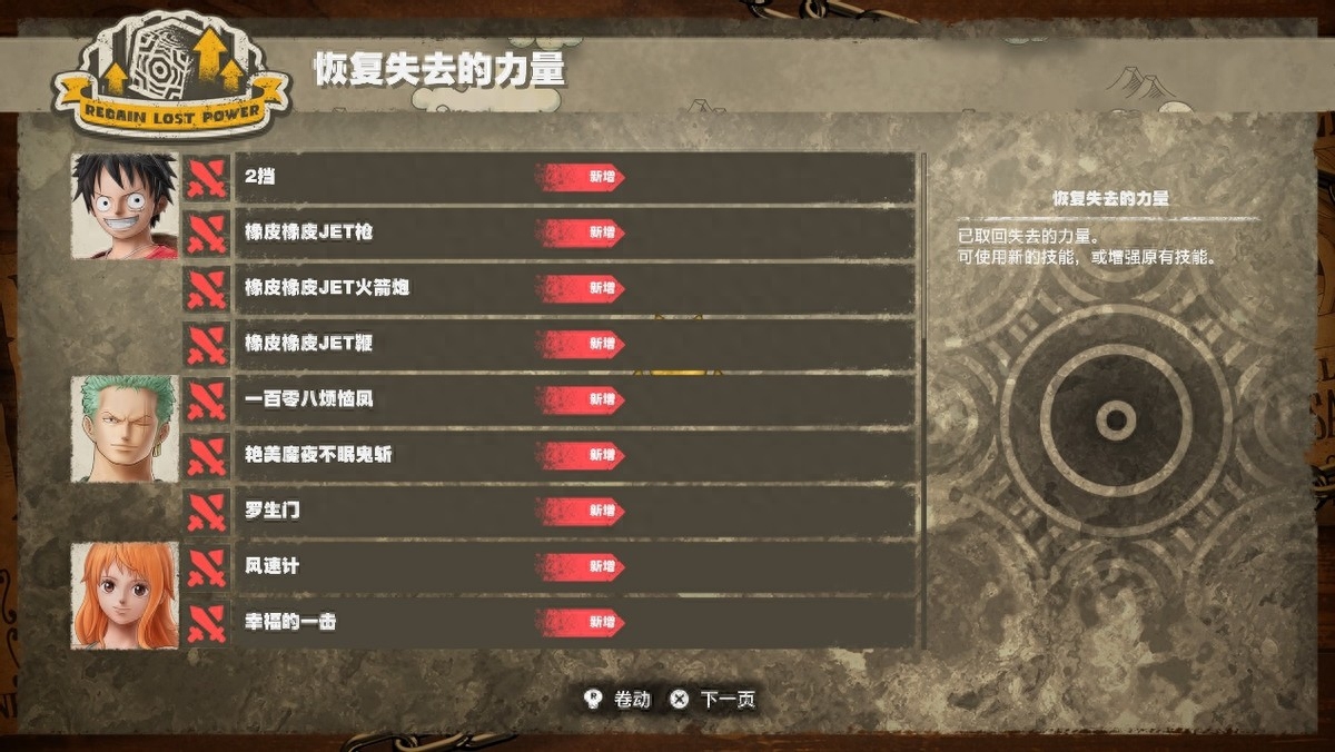 作为一款RPG游戏,《时空穿越诗》有着足够多的修真元素。除了经典的收集材料和烹饪的设定外,最值得一提的是游戏中的技能和装备系统。随着回收的灵魂水晶数量逐渐增加以及剧情的进展,路飞一行人可以获得遗忘技能,并通过在技能中嵌入一定数量的灵魂水晶来提升自己的技能等级。