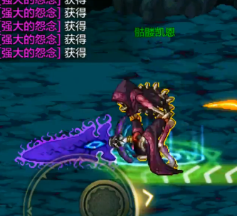 骷髅凯恩攻击敌人时会释放冲击波,造成高额伤害。每隔一段时间,就会释放出一个可以追踪玩家的魔法阵。一旦接触到魔法阵,玩家就会进入茫然状态。对玩家的反应、走位、操作都有很高的要求。因此,要善于使用控制技能来压制怪物,必要时使用一些无敌技能来躲避怪物的攻击。