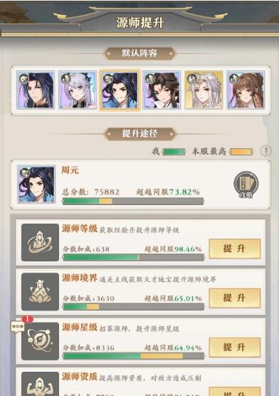 不同的源师会有不同的资质条目,可以让他们更好的提升。