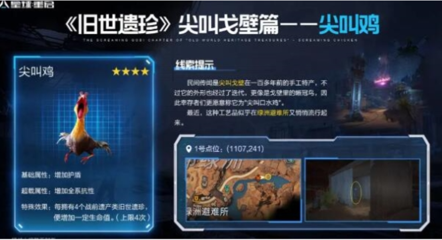 在星球重启游戏中可以获得多种尖叫鸡,但大多数玩家不知道在旧世界宝藏和绿洲庇护所中可以拾取多种尖叫鸡。接下来小编就为玩家们带来了《重启星球》中尖叫鸡的位置介绍。感兴趣的玩家快来看看吧!