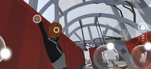 2、单手抓住墙壁后,开始左右疯狂摆动身体,也就是左右拉动轮盘。