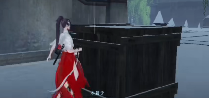 2、按照追踪任务剧情,先到下图位置,取出木箱里的瓷器;