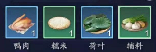 鸭肉,荷叶,糯米,辅料(粗体字是必须的)
