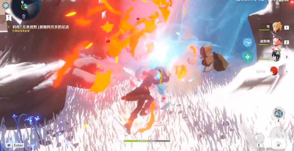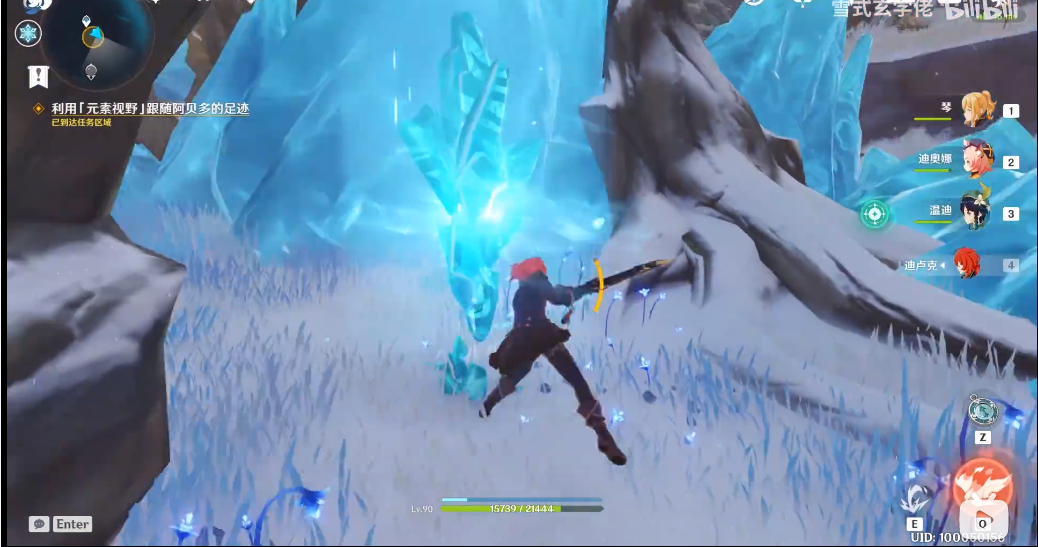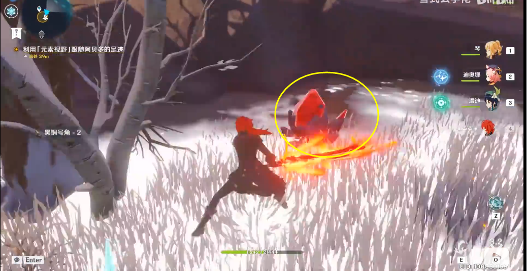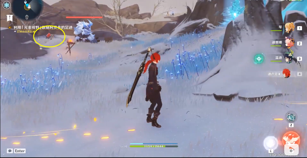 3。然后回到金银花树的位置,把它砍断一点。重复这个操作找到深红色的石头,然后切割冰晶。几次之后,就可以解锁金银花树了。