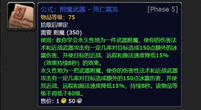 最后,埃霍恩会掉落一个名为死亡冰霜的武器附魔的蓝图,这是一个非常漂亮的附魔。