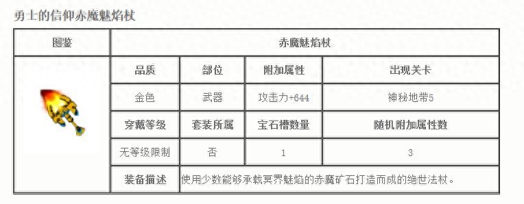 红魔附魔火焰法杖,这个职业的毕业武器,比剑有更高的攻击力加成。事实上,这把武器的攻击力加成是所有职业中最高的,弥补了法师平A的缺点。就像剑一样,装备这把武器后,角色的特殊攻击也有特效,而且金色雷霆实在是太厉害了。权杖,这个职业的毕业武器,比剑具有更高的攻击加值。事实上,这把武器的攻击加成是所有职业中最高的,弥补了法师的缺点。角色的特殊攻击与剑相同。装备该武器还具有特殊效果。金色雷霆实在是太厉害了。