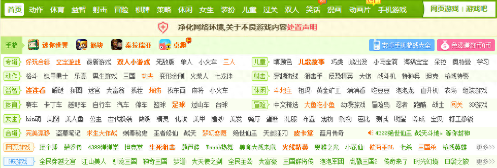 是的,对于80、90年代出生的人来说,FC是我们的童年,但对于1995、2000年代出生的人来说,上图是他们的记忆,虽然颇受争议,但在今天仍然具有强大的力量——4399。现在,它的存在堪称一个呼吸着行业的新鲜空气。它不需要任何配置,无需客户端,无需下载,无需收费,无需绑定,甚至大部分游戏都支持两人使用同一个键盘!它的存在丰富了等待游戏加载的碎片时间,也让电脑配置不足带来的担忧消失。就连我这个90后大叔也深受这些游戏的毒害,至今偶尔也玩几把。