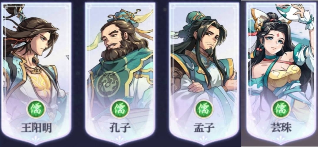 培养中低氪玩家推荐儒家阵容。其特点是王阳明的核心输出不系统、简单粗暴;辅助仙子都很优秀,功能也各有不同。只有一个绝对核心。王阳明,当前版本最强的四系输出卡,虽然发育难度比斗士低,但各方面的体验并不比斗士阵容差。优点是主副本和pvp都非常出色。王阳明的实力,让整个儒家阵营的水平都得到了提升。缺点是儒家有用卡牌有限,特别是前端有用卡牌,辅助仙人突出。孟子云的《珍珠洞》很棒。这也导致了儒教非常适合和其他阵容混搭的特点。这四张万金油卡可以很好的融入其他阵容。值得注意的是,韩信的性格可能一不小心就契合了道毒。