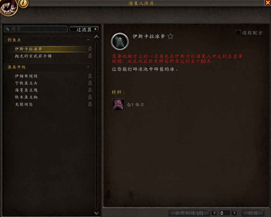 毕业装备:彻底升级你在伊斯卡拉的渔具。使用相同角色制作渔具升级工具不知道除了上表中的工具之外,您还需要制作什么才能完全升级,同时满足声望和钓鱼技能点要求。