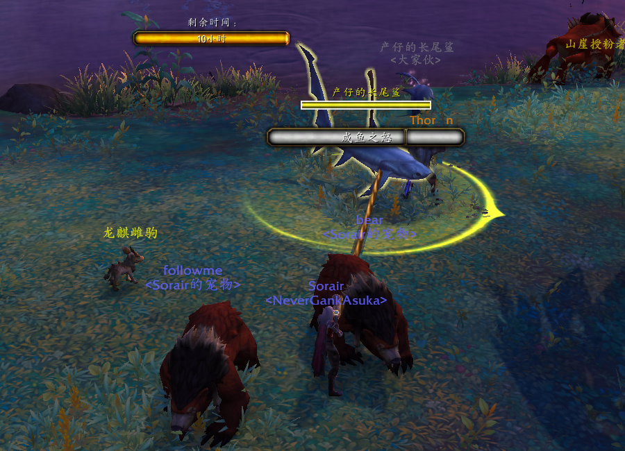 目前游戏中有五个鱼巢,其中河口鱼巢是永久的,高地鱼巢会改变位置。昨晚试服周CD更新后,高地鱼巢从蒂尔堡水库改为咆哮龙泉。也就是说,同一类型的鱼巢有可能不同时存在。