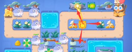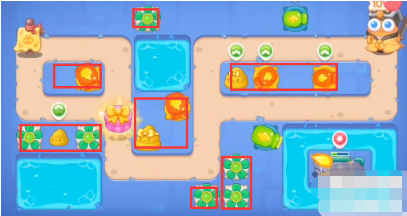3.花完后,放置大炮,继续清除障碍。顺序如下所示。