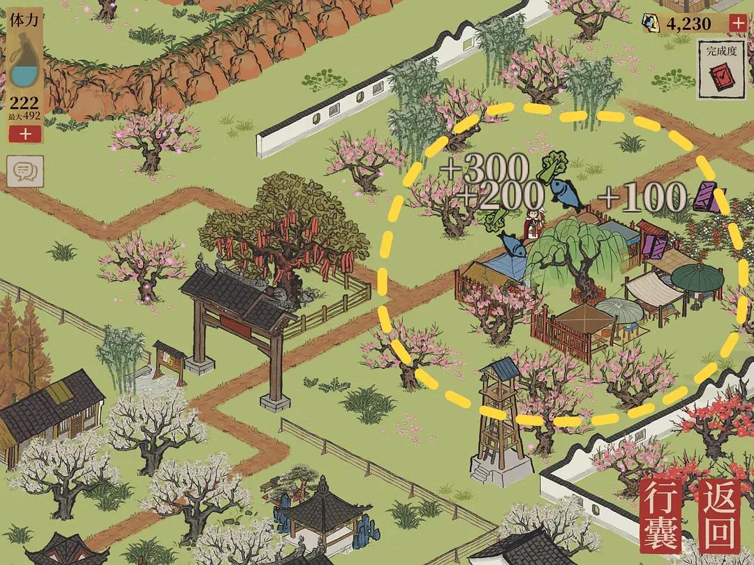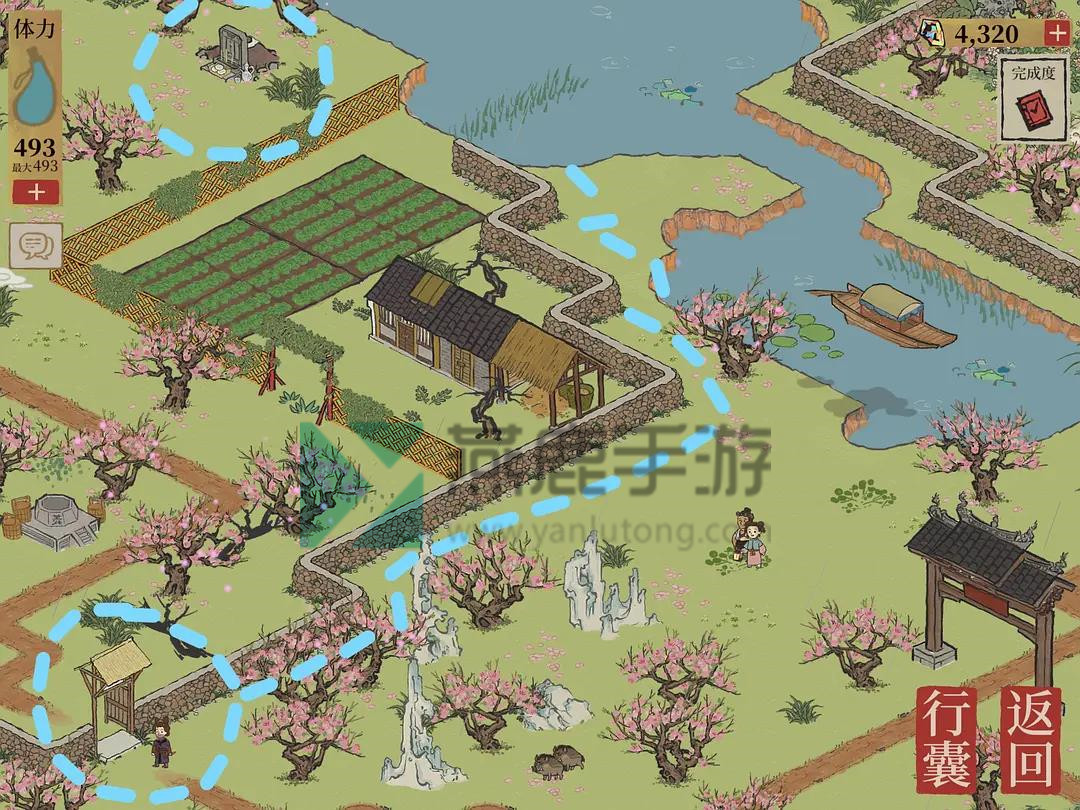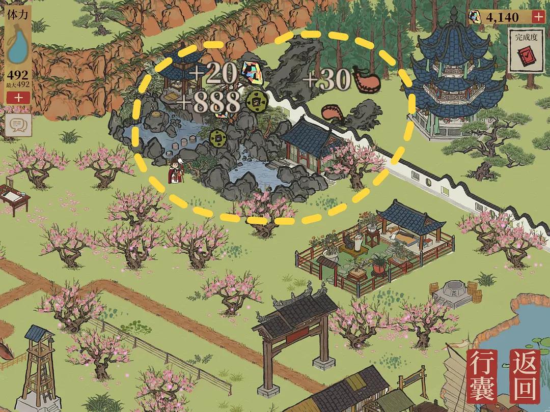1。首先,你需要在冒险地图上点击坑,种上桃花,修复所有废墟;