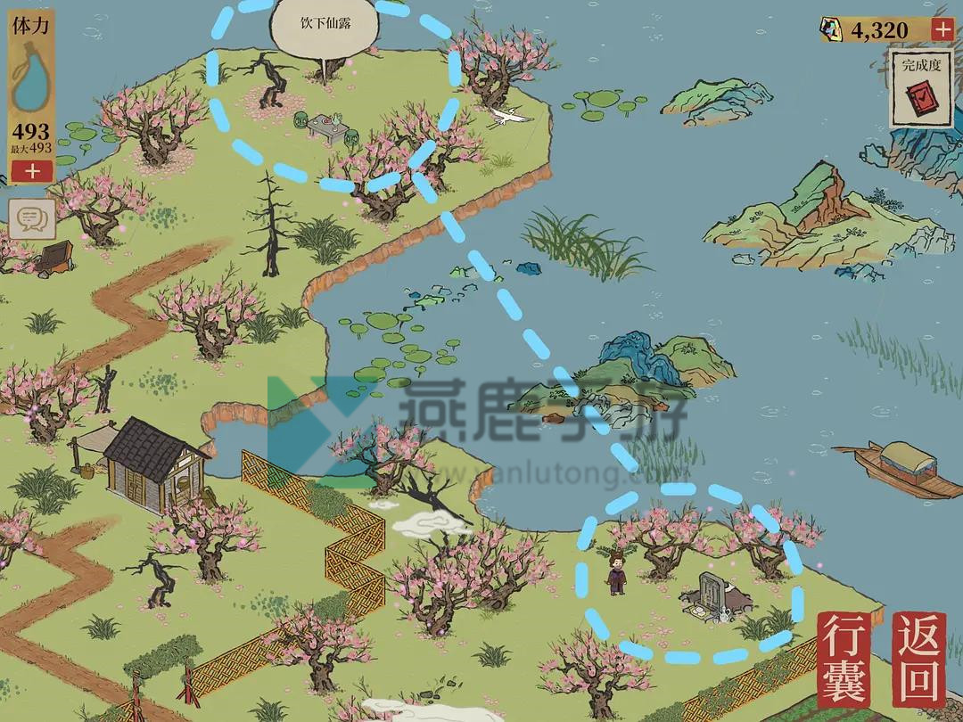 4。进入坟墓喝下仙露,去唐伯虎点击桃树完成最后一个任务。