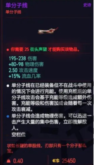 单分子线是赛博朋克中的一种假肢武器。很多朋友想知道如何获得单分子线。那么小编就来告诉大家《赛博朋克2077》中单分子系的获取方法,一起来看看吧。