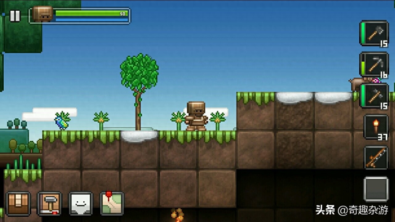 清道夫杰克是对经典沙盒游戏Talaria 的模仿。玩法很相似,有冒险、RPG、生存等多种元素。但它是一个纯粹的单机,没有网络或Google框架。虽然不到100MB,但是内容却非常丰富。游戏附带大量收集材料和数百种合成物品,总计近千种。收集它们将点亮卷轴和解锁成就,这是最有趣的事情之一。除了沙盒游戏外,还有地下冒险游戏,基本与Talaria类似。地下有很多宝藏和怪物。