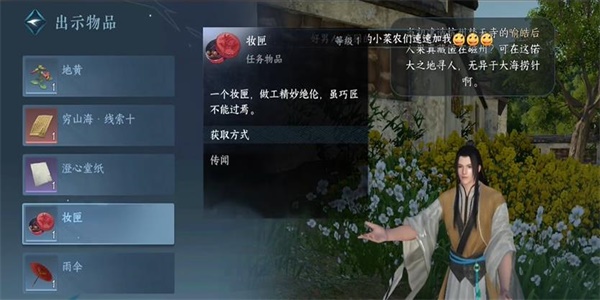 2、然后玩家需要将物品交给NPC并与其对话,即可获得化妆盒;