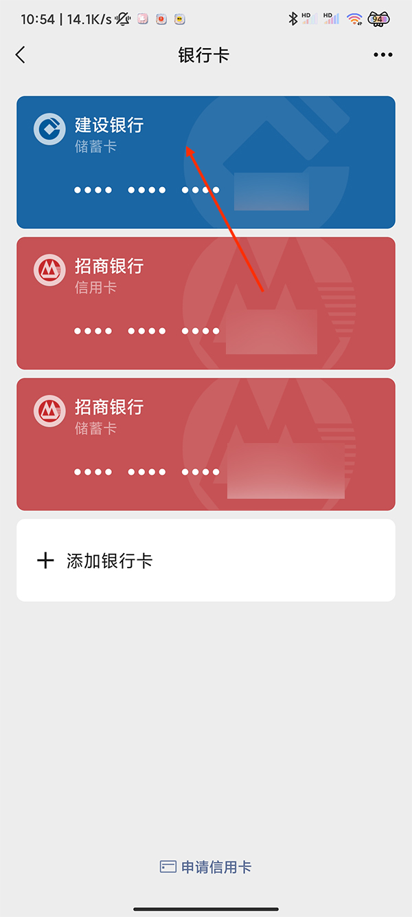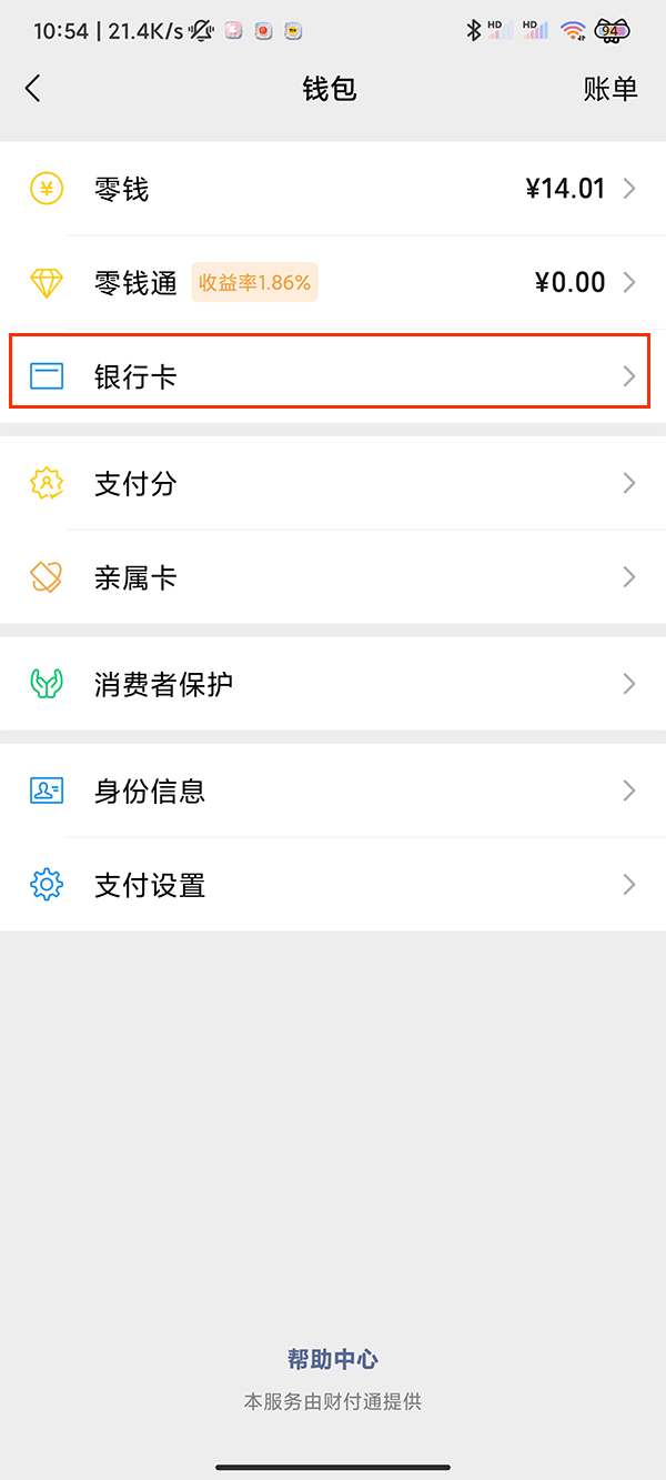3.点击银行卡选项。