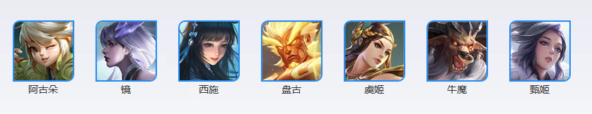 答:阿古朵、靖、西施、盘古、胡吉、牛魔、甄吉