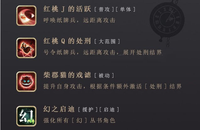 爱丽丝专门治疗各种过度活跃的玩家。她大招留下的【结界】是她的主要输出方式。只要对手移位,她就可以施展【处决】。因此,你可以在阵容中安排一些迫使对手移动的幻书,与爱丽丝的【结界】结合起来,在一轮内给对手造成大量伤害。