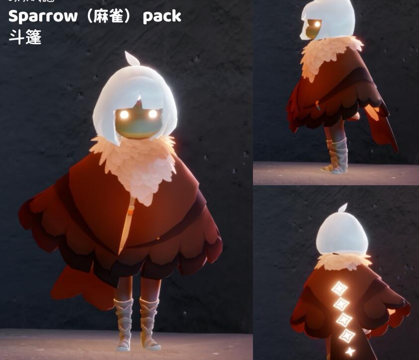 2、麻雀斗篷:是一种羽毛装饰,和大家经常看到的麻雀颜色一样;