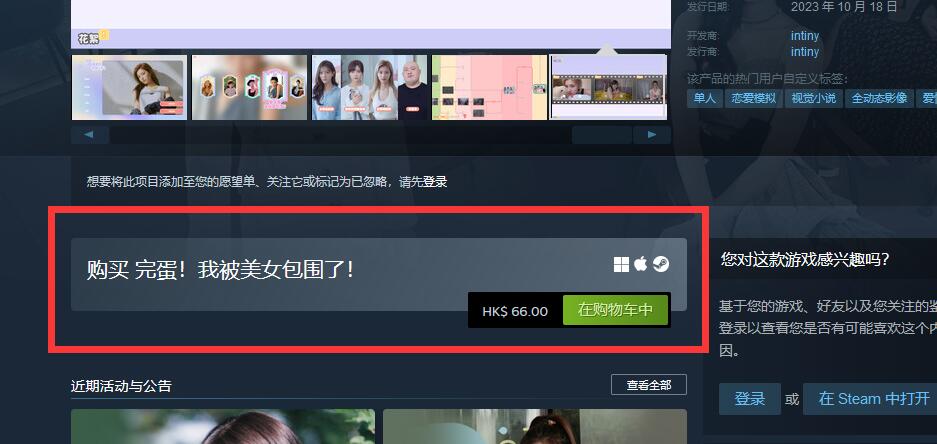 1.进入网页【https://store.steampowered.com/app/2322560/_/】,可以看到游戏“It"s Over!”我的身边都是美女! 》。