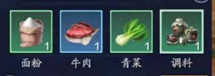 面粉、牛肉、蔬菜、辅料(粗体字为必备食材)